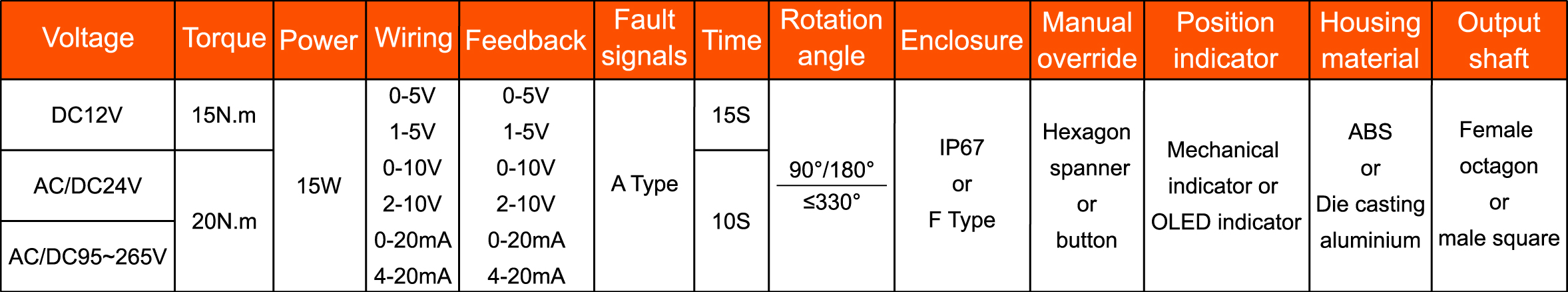 3. Control signal: 0-5V,0-10V, 4-20mA