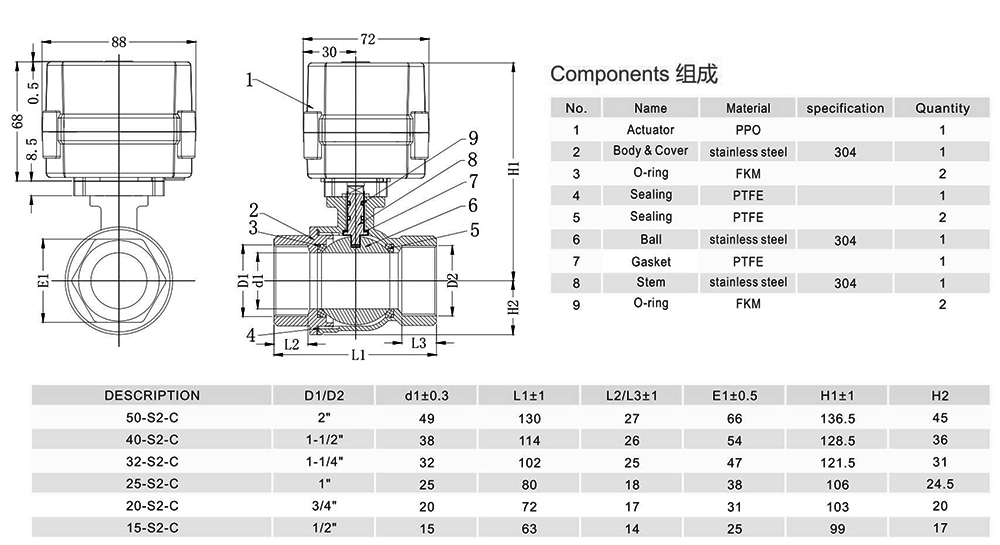 4. Size: 1/2''-2''(DN15-DN50); BORE SIZE: 15mm-49mm;